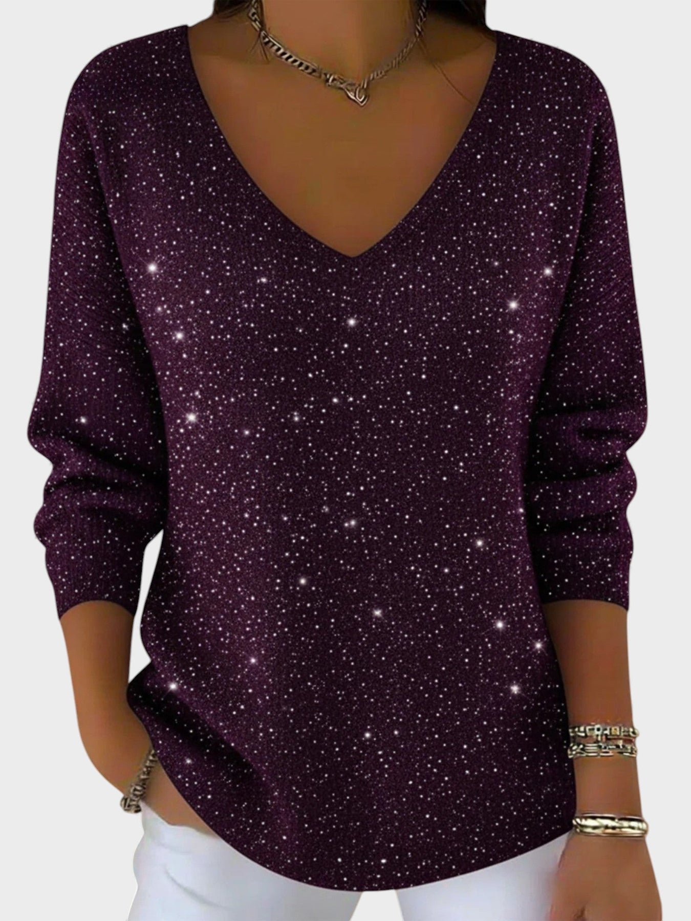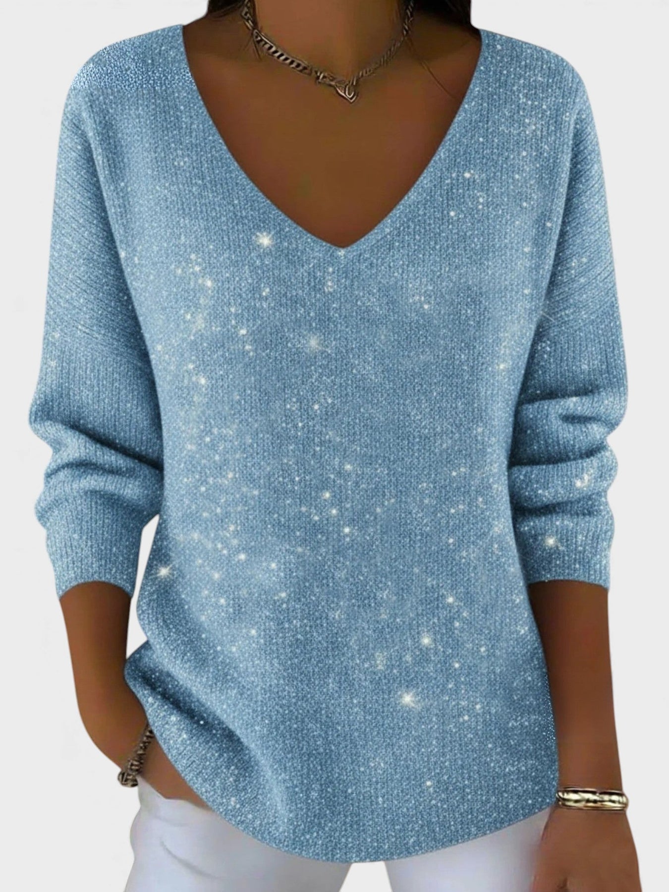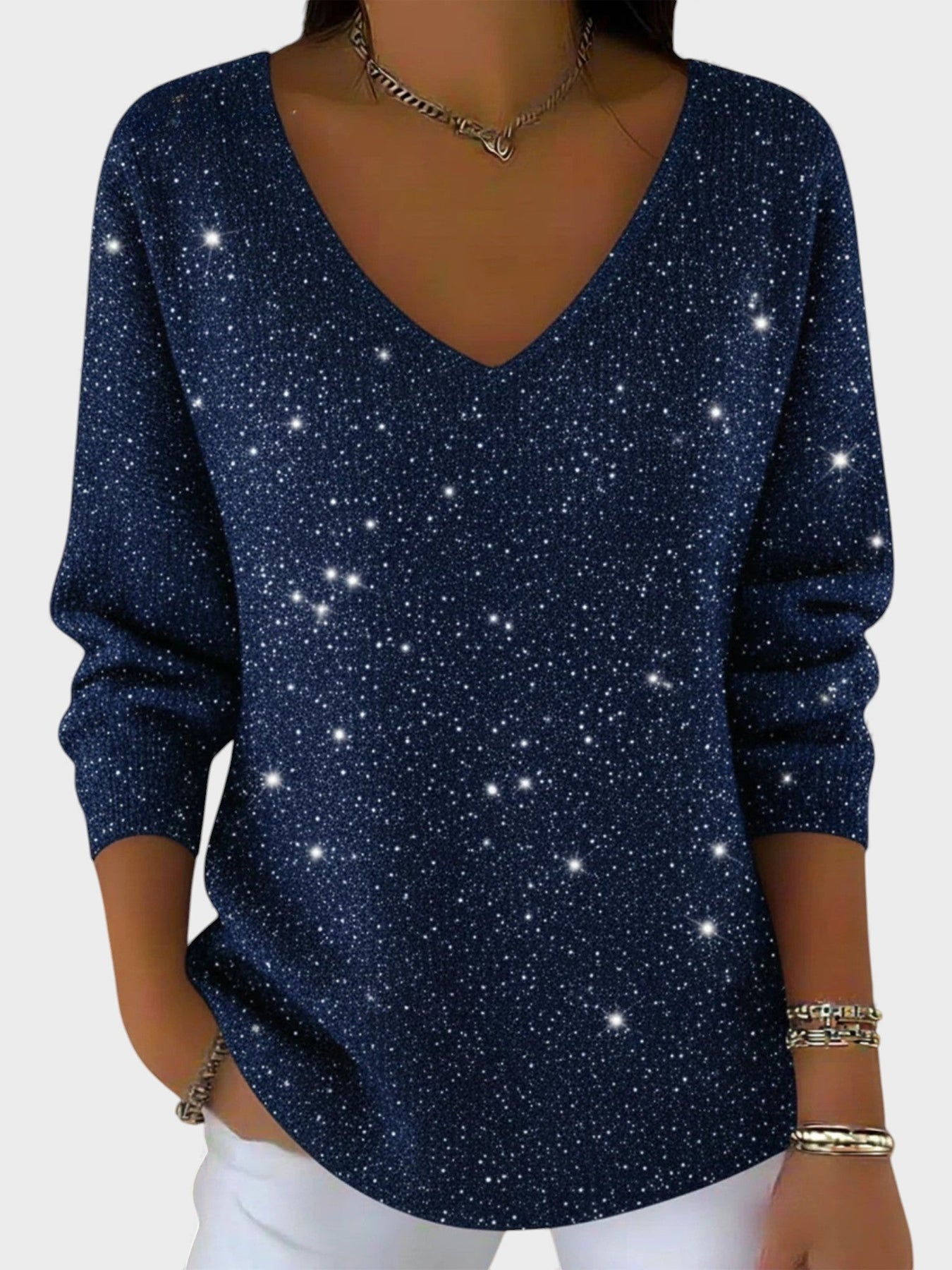El Inés™ es el suéter perfecto para deslumbrar en cada celebración. Con su elegante escote en V y su acabado brillante, este jersey aporta un toque de sofisticación y glamour, manteniéndote cómoda y estilosa durante las festividades.