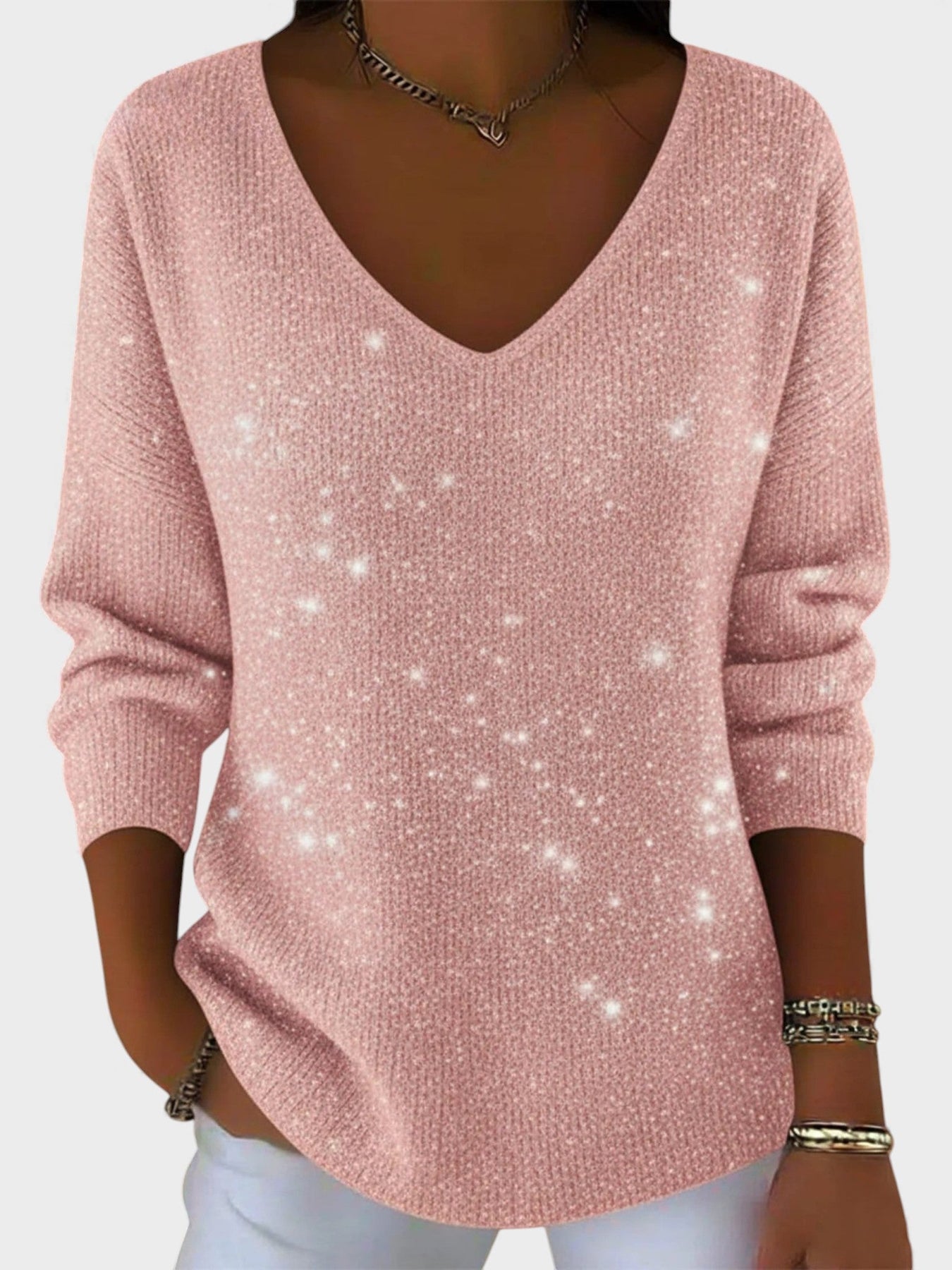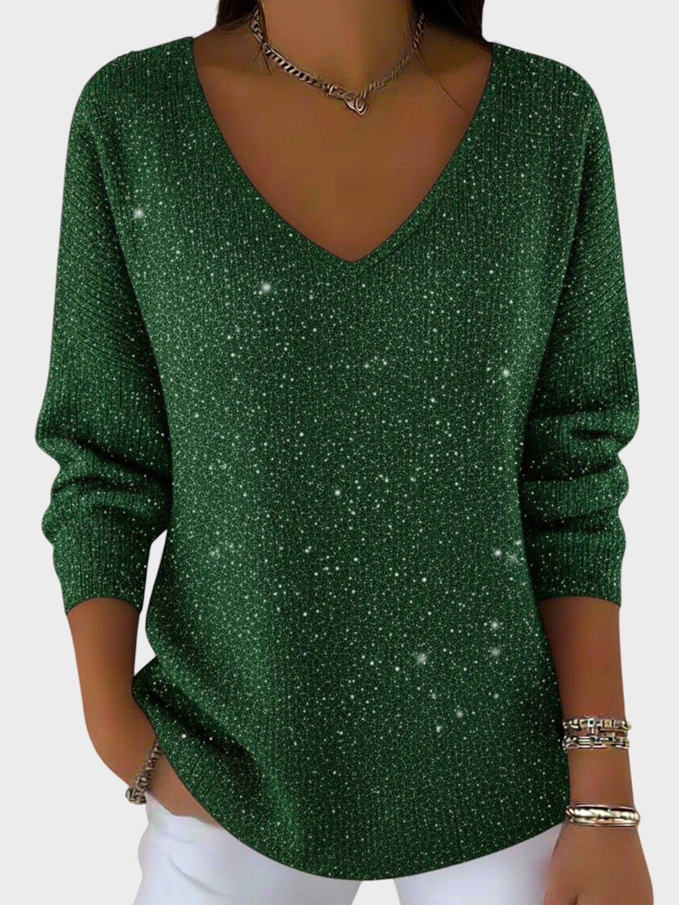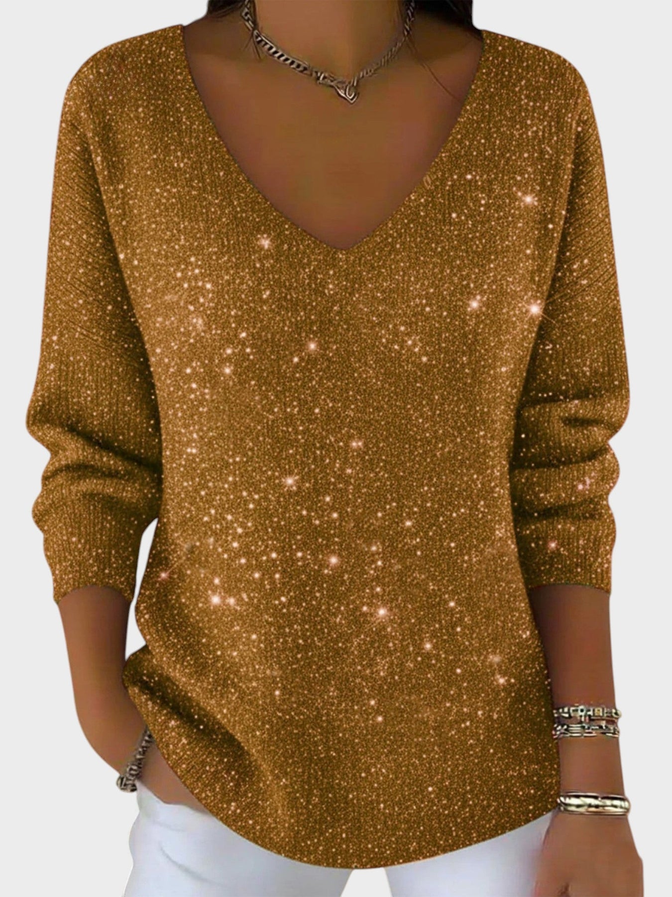 El Inés™ es el suéter perfecto para deslumbrar en cada celebración. Con su elegante escote en V y su acabado brillante, este jersey aporta un toque de sofisticación y glamour, manteniéndote cómoda y estilosa durante las festividades.